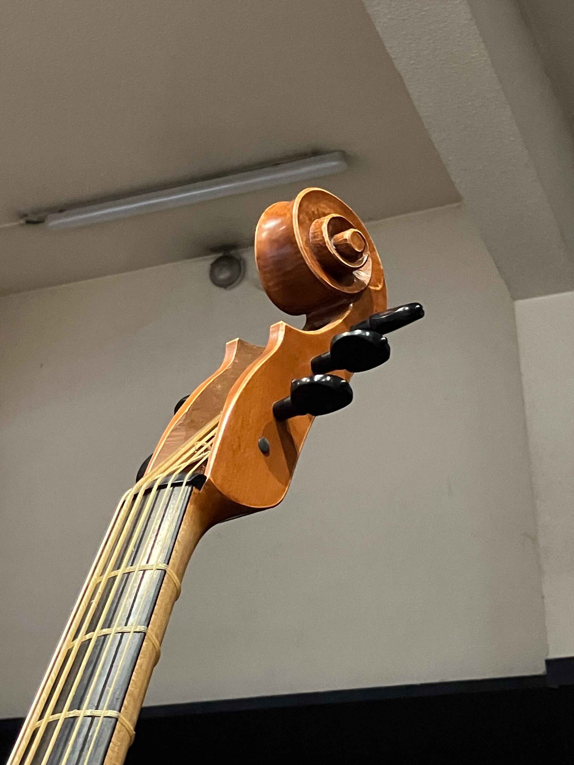 Photo: détail d’un violone en sol fabriqué par Floris van der Voort.