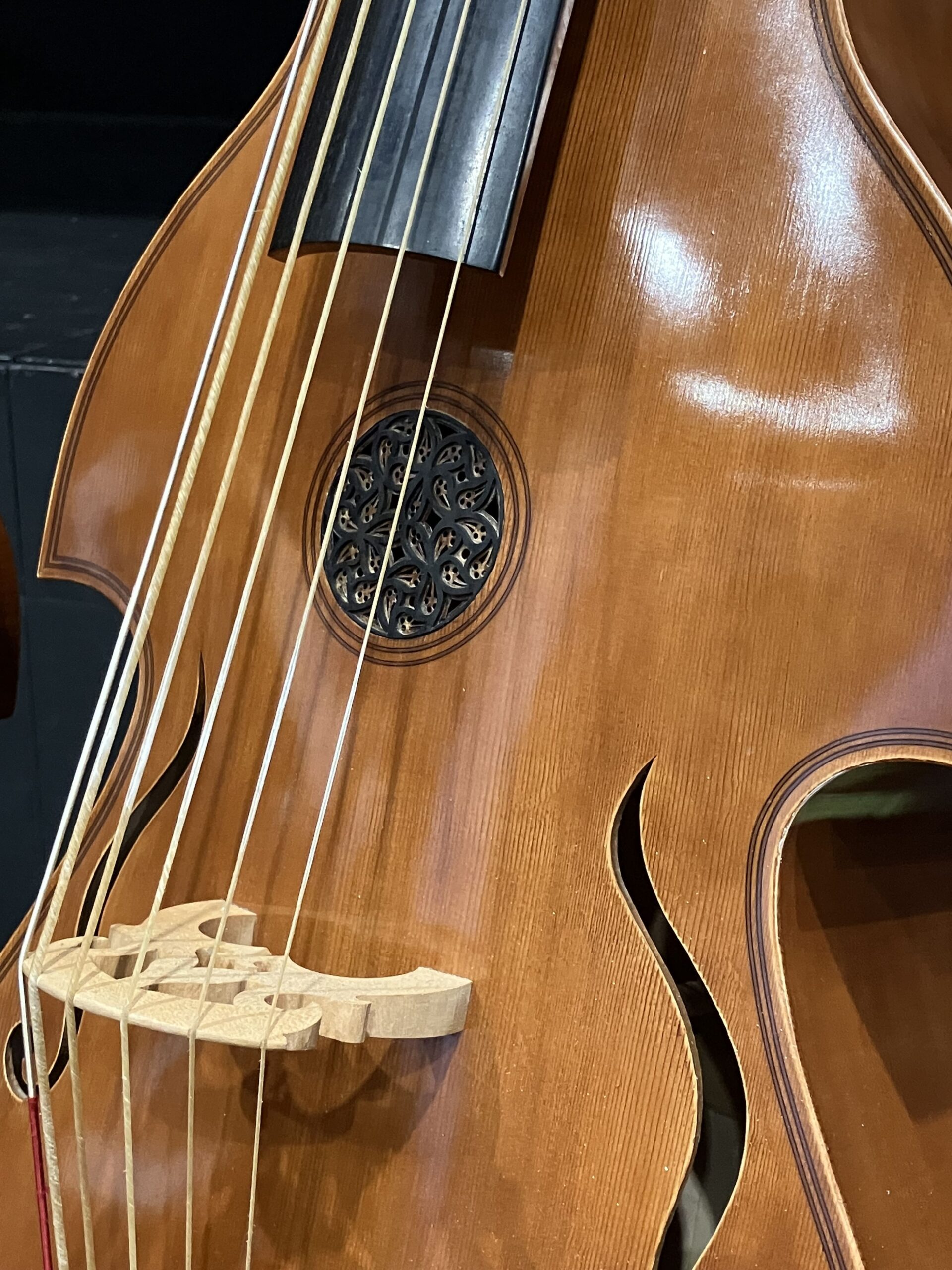 Photo: détail d’un violone en sol fabriqué par Floris van der Voort.